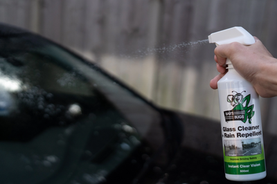 As well as cleaning, the Bar's Bugs Glass Cleaner with Rain Repellent leaves behind a hydrophobic formula that repels rain, sleet and snow. See Clearly and Drive Safely with Bar's Bugs, no matter the weather.Β